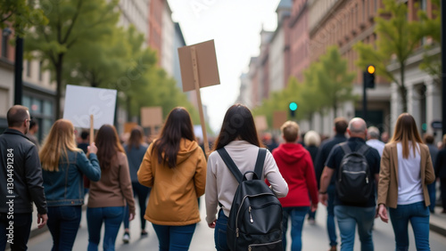 activists protest busy city street signs banners