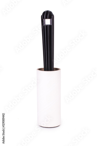 Adhesive roller for cleaning clothes from animal fur and hair isolated on white