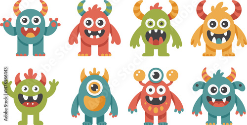 Adorable and colorful vector illustration of friendly monsters in diverse shapes and styles