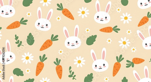 Adorable Bunny And Carrot Pattern Pastel Spring Design AI Generated
