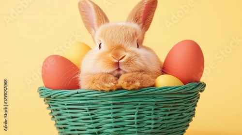 Adorable bunny in colorful Easter basket with eggs,Digital Easter Bunny Stickers