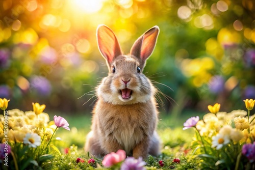 Adorable Bunny with Big Teeth in a Lush Garden Setting