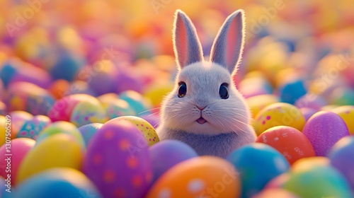 Adorable Bunny with Colorful Easter Eggs