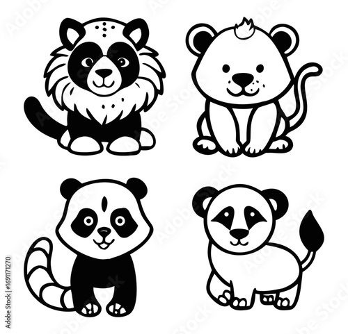 Adorable cartoon animal illustrations perfect for children's books and whimsical designs