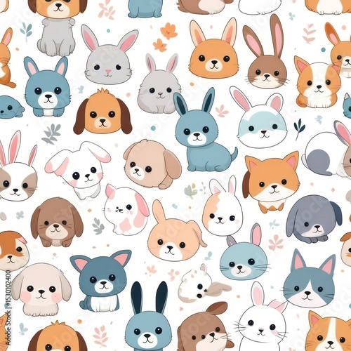 Adorable Cartoon Dogs and Rabbits Seamless Pattern Cute Animal Illustration