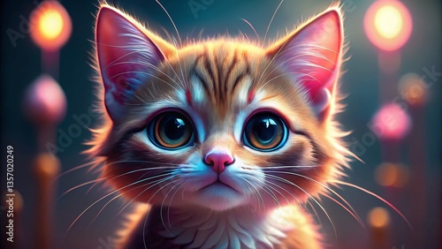 Adorable Cartoon Kitten Macro Photography: Close-up Whiskers & Eyes