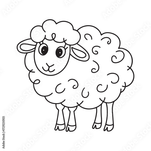 Adorable Cartoon Outline Drawing of a Curly Fluffy Sheep or Lamb with Big Eyes for Children's Nursery Designs