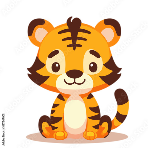 Adorable cartoon tiger cub sitting, cute striped feline vector illustration