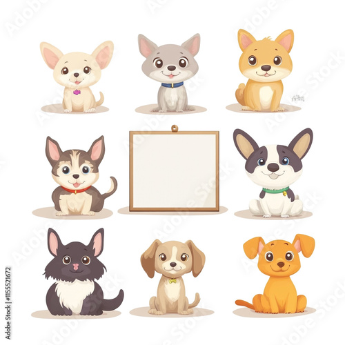 Adorable Collection of Cartoon Dogs: A Delightful Set of Puppy Portraits