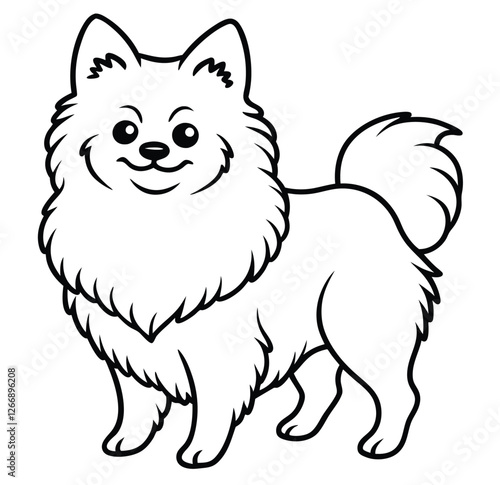 Adorable cute husky fluffy Pomeranian dog, American eskimo dog. hand drawn icon cartoon character line art vector illustration outline image