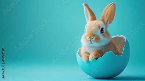 Adorable easter bunny emerging from a turquoise egg - cute holiday concept