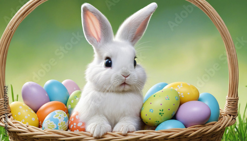 Adorable Easter Bunny in Basket With Eggs