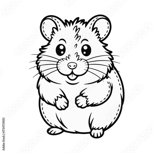 Adorable Hamster Cartoon Illustration Cute, Happy Rodent in Black and White. Perfect for Children's Designs and Animal-Themed Projects
