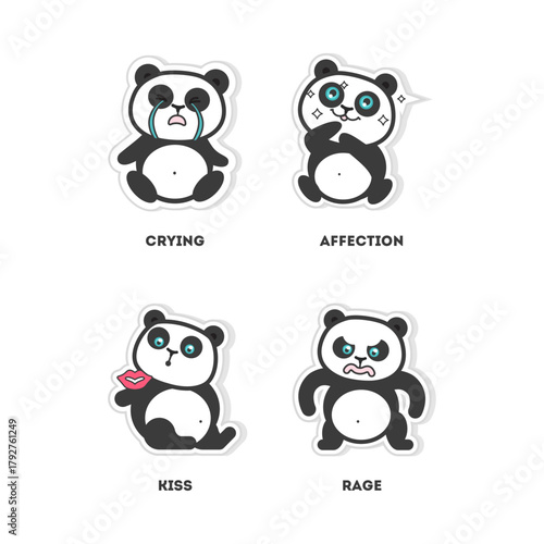 Adorable Panda Expressions Concept Set Displaying Various Emotions on Cute Animal Stickers for Graphic Design
