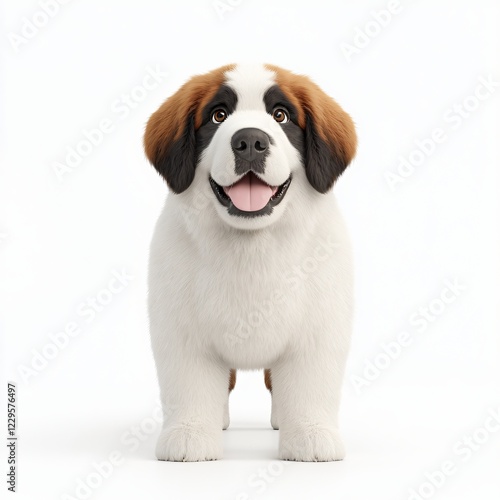 Adorable Saint Bernard Puppy Happy Dog Fluffy Fur White Background Cute Pet