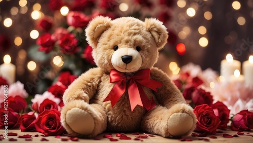 "Adorable Teddy Bear with Red Roses: Valentine's Day Greeting Card Idea – AI-Crafted Art"