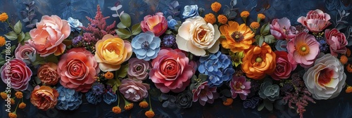 Adorned in delicate hues, a mesmerizing array of blossoms dance gracefully in a watercolor masterpiece.