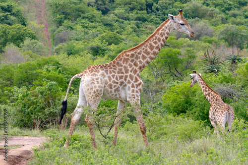 Adult giraffe and calf photographed at Tala Private Game Reserve near Pietermaritzburg in KwaZulu-Natal, South Africa