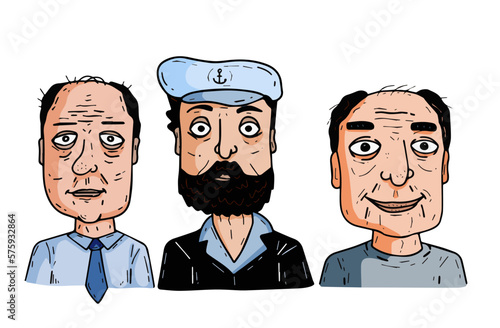Adult man in hand-drawn style. Outline male character. Sketch and cartoon head
