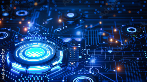 Advanced Computer Technology, Digital Circuit Board and Processor, Blue Background, Future of Computing