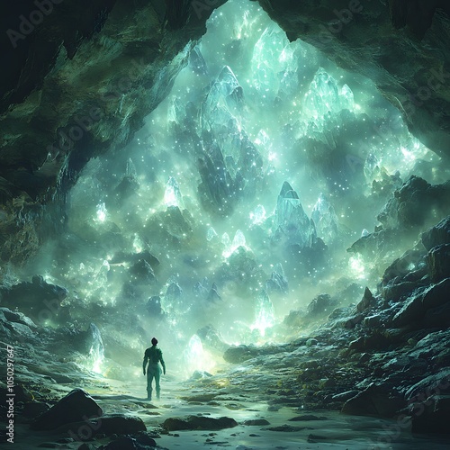 Adventurous 3D character elves exploring a hidden cave filled with sparkling crystals and intricate carvings on the walls