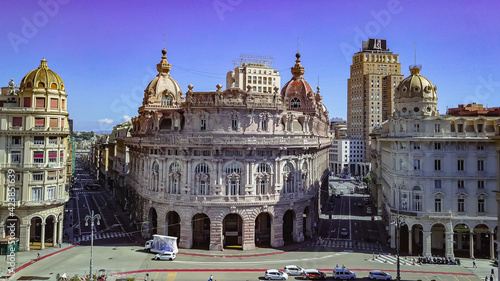Aerial panoramic drone view of De Ferrari square in Genoa,Italy. Situated in heart of the city.