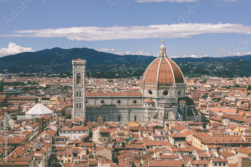 Aerial panoramic view of Florence city and Cattedrale di Santa Maria del Fiore