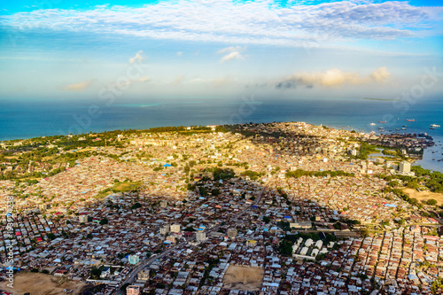 Aerial photography of Stone Town in Zanzibar, Tanzania.