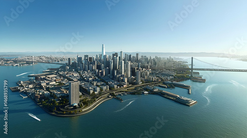 Aerial View of a Coastal City Skyline on a Sunny Day