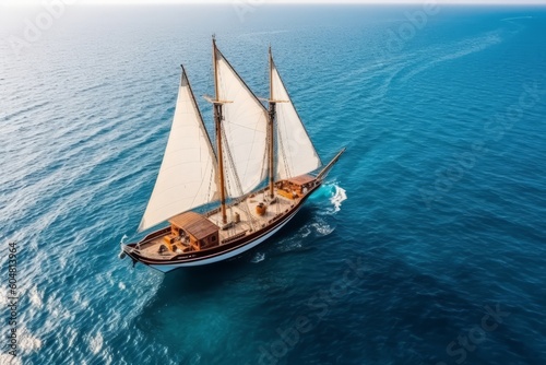 Aerial view of a private yacht sailing on calm waters, representing the luxurious and extravagant lifestyle. Generative AI