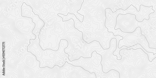 Aerial view of a topographic map black and white contour lines showing elevation changes in shades of gray creating an abstract and geographical pattern.