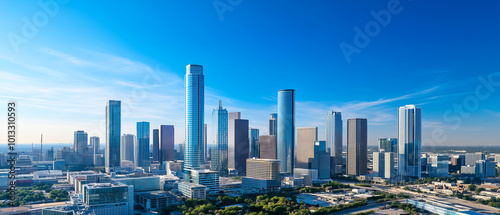 Aerial View of City Skyline with Skyscrapers and Buildings