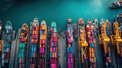 Aerial View of Container Ships Docked in Port, International Trade and Global Logistics