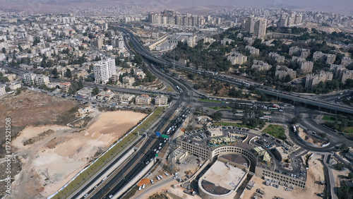 Aerial view of Highway 1 and French Hill interchange Jerusalem