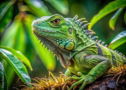 Aerial View of Iguana on Branch, Green Iguana, Tropical Treetop, Wildlife Photography