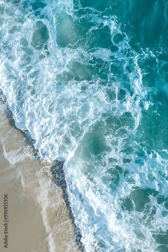 Aerial View of Ocean Waves Crashing on Sandy Beach