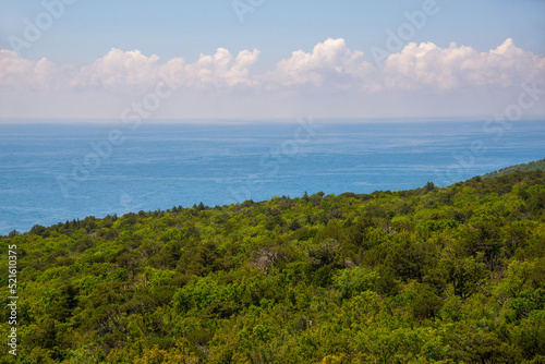 Aerial view of of the nature reserve Mali Utrish and Black Sea on sunny summer day