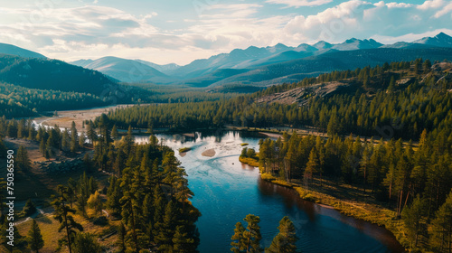 Aerial view over a beautiful mountain landscape