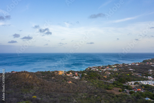Aerial view over coast of Curaçao / Caribbean Sea around Westpunt