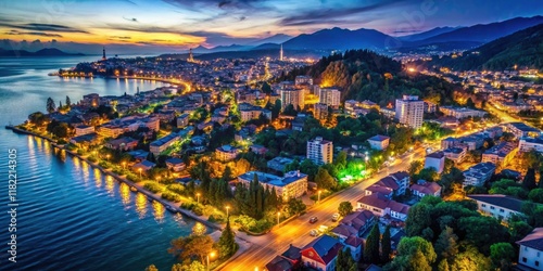 Aerial view: Sukhumi's resort town glows, a vibrant tapestry of city lights at night.
