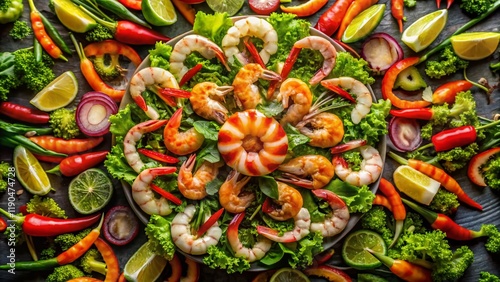 Aerial View: Tiny Shrimp Salad, Asian Inspired Dance, 4K Resolution