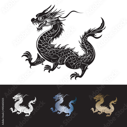 Aesthetic Black and White Dragon Illustration with Elegant Details