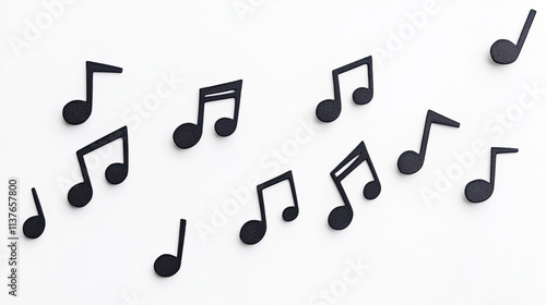 Aesthetic perspective dancing music notes and melodic symbols on white space