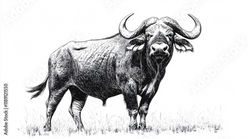 African Buffalo Vector Illustration in Black and White for Design Projects