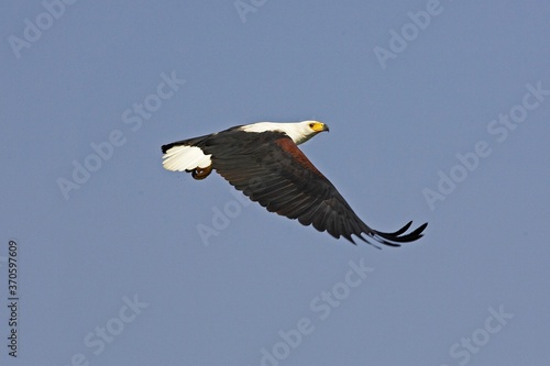 African Fish Eagle, haliaeetus vocifer, Adult in Flight, Baringo Lake in Kenya