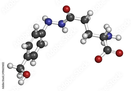 Agaritine mushroom toxin molecule. 3D rendering. Atoms are represented as spheres with conventional color coding