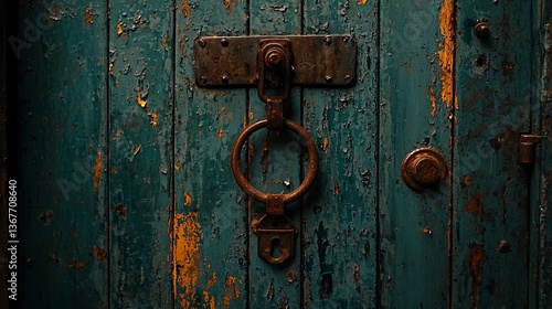 Aged Wooden Door with Rustic Metal Hardware