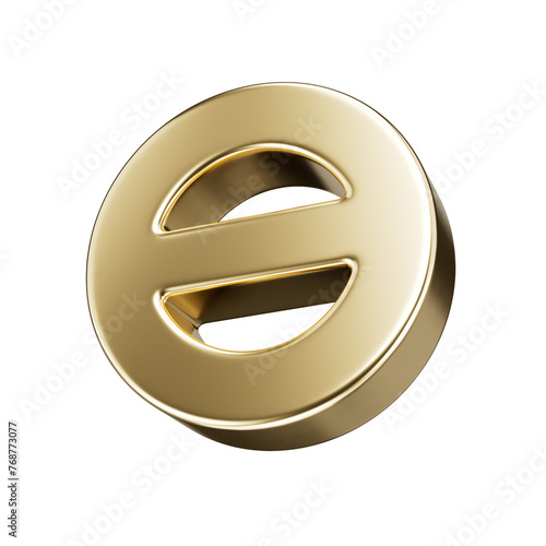 Agender 3d icon with metal texture. Golden gender diversity symbol isolated on transparent background.