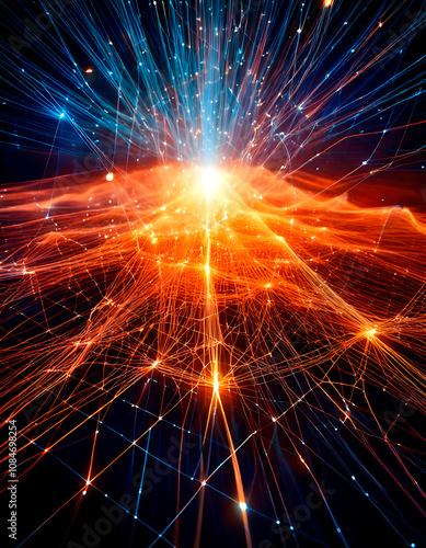 AI, complex computer network of interconnected nodes with data lines flowing between them