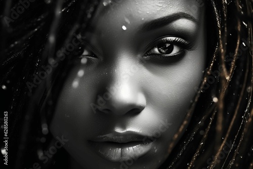 AI generated illustration of a close-up portrait of a young African woman with dreadlocks